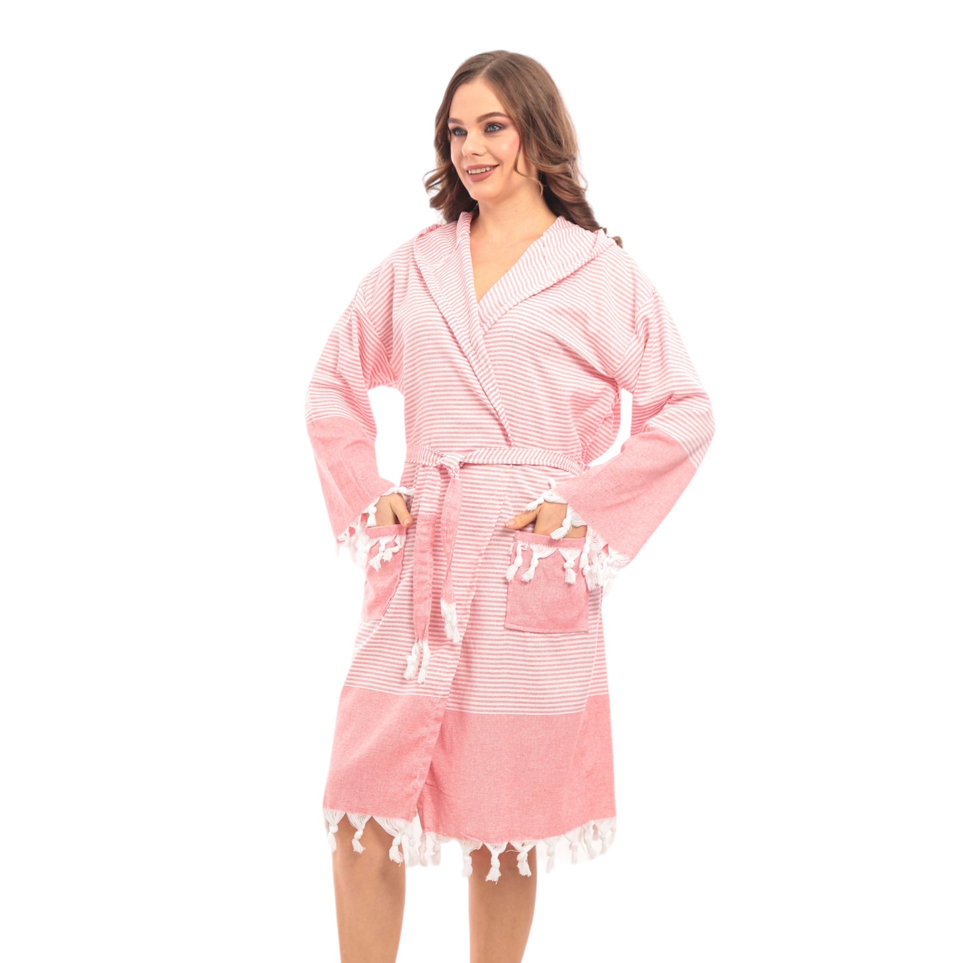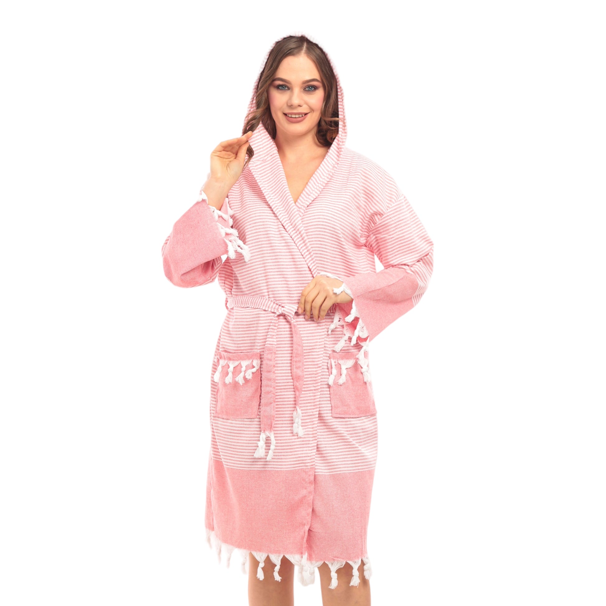 Yüksek Kaliteli İşçilik - En iyi pembe hamam havlusu kumaşından yapılmış bu yüksek kaliteli sağlıklı yaşam bornozunda özellikle rahat hissedin.