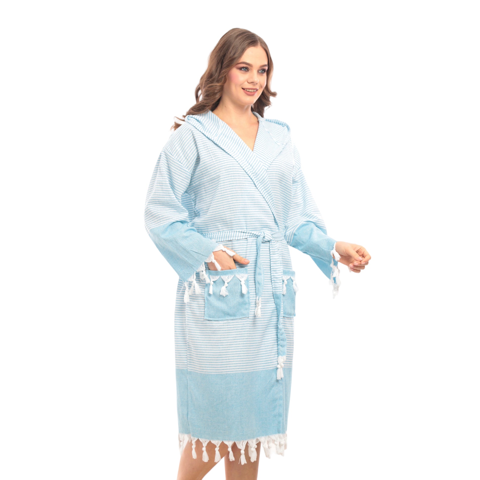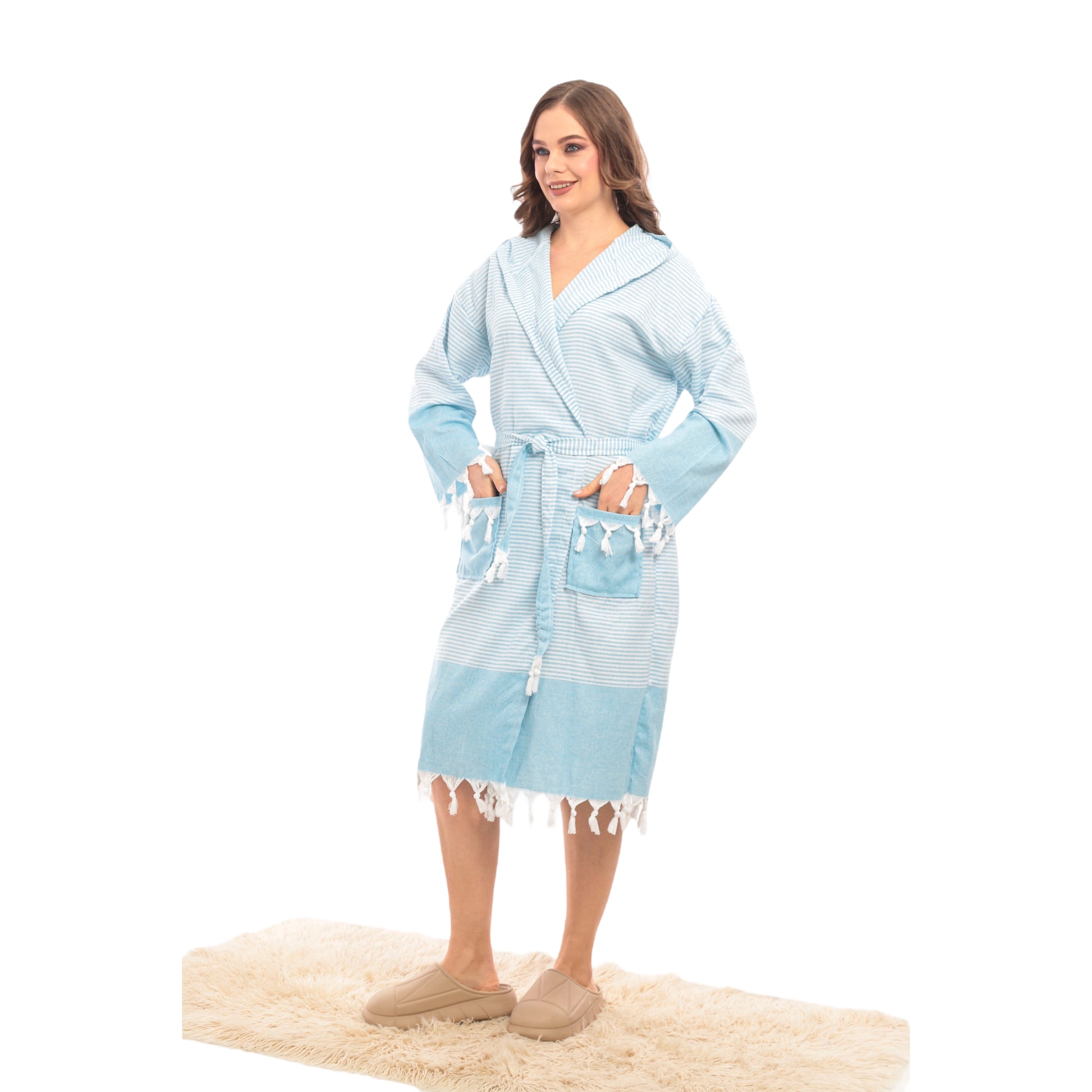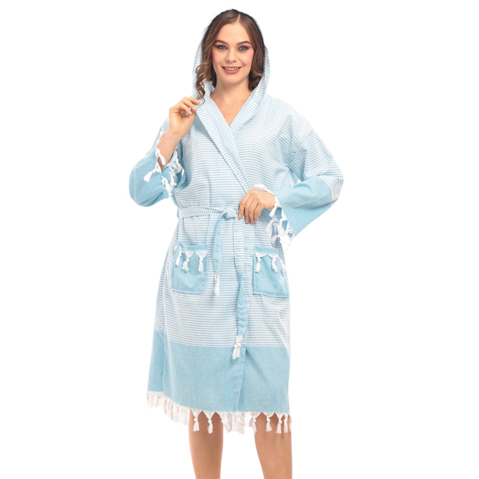 Lüks Tasarım - Üstün konfor için kaliteli hamam havlusundan üretilen bu zarif bornozla lüks hissinin keyfini çıkarın.