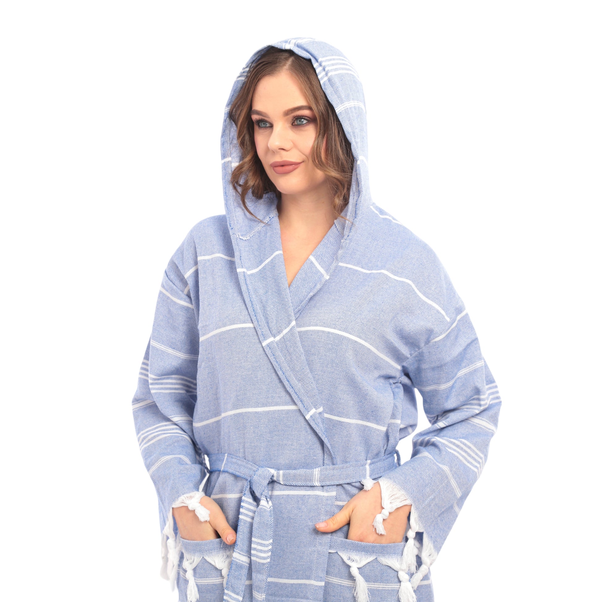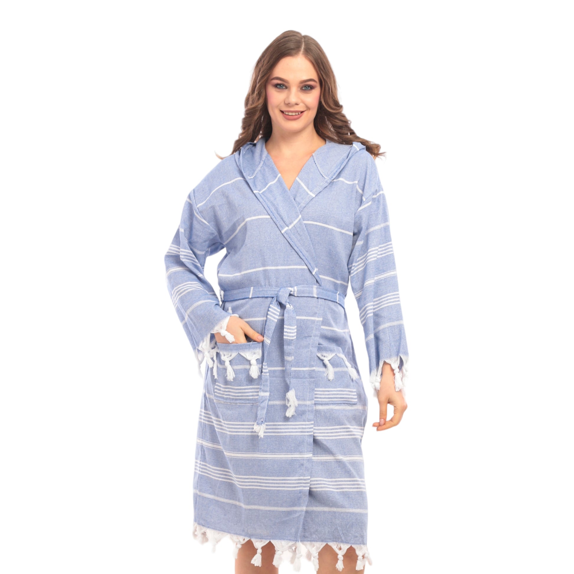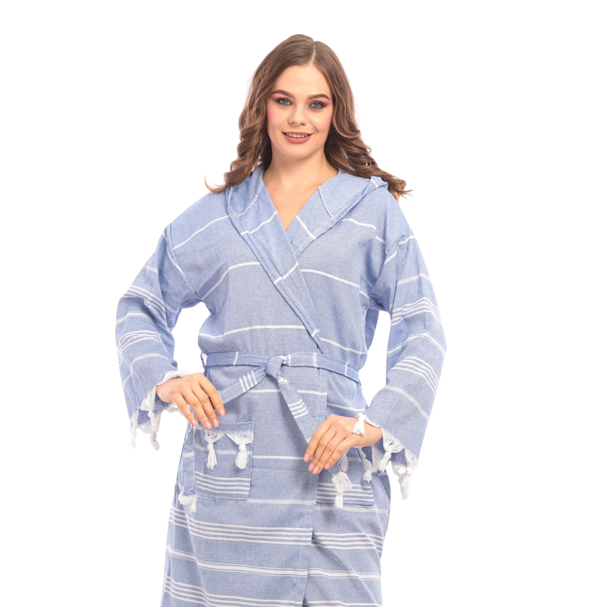 Lüks Tasarım - Üstün konfor için kaliteli hamam havlusundan üretilen bu zarif bornozla lüks hissinin keyfini çıkarın.