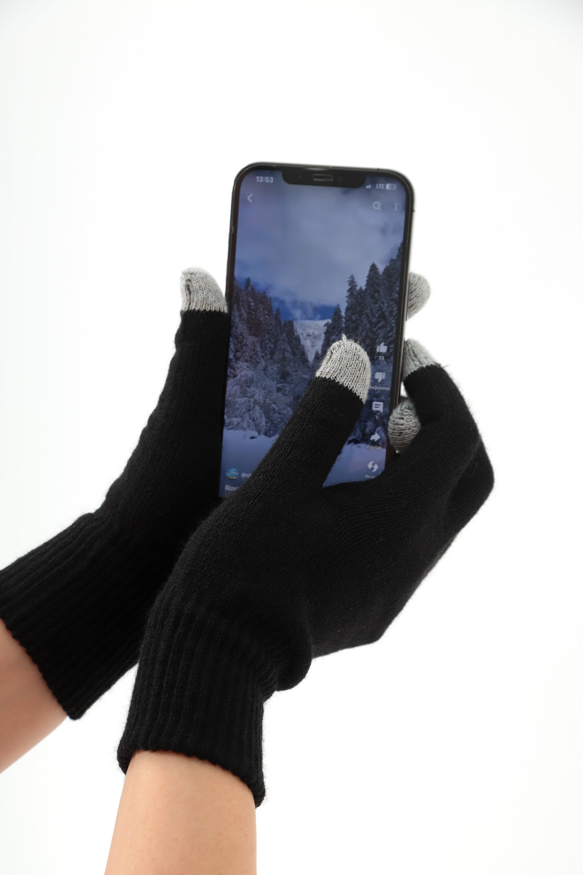Dokunmatik Parmaklı Eldiven (Siyah)