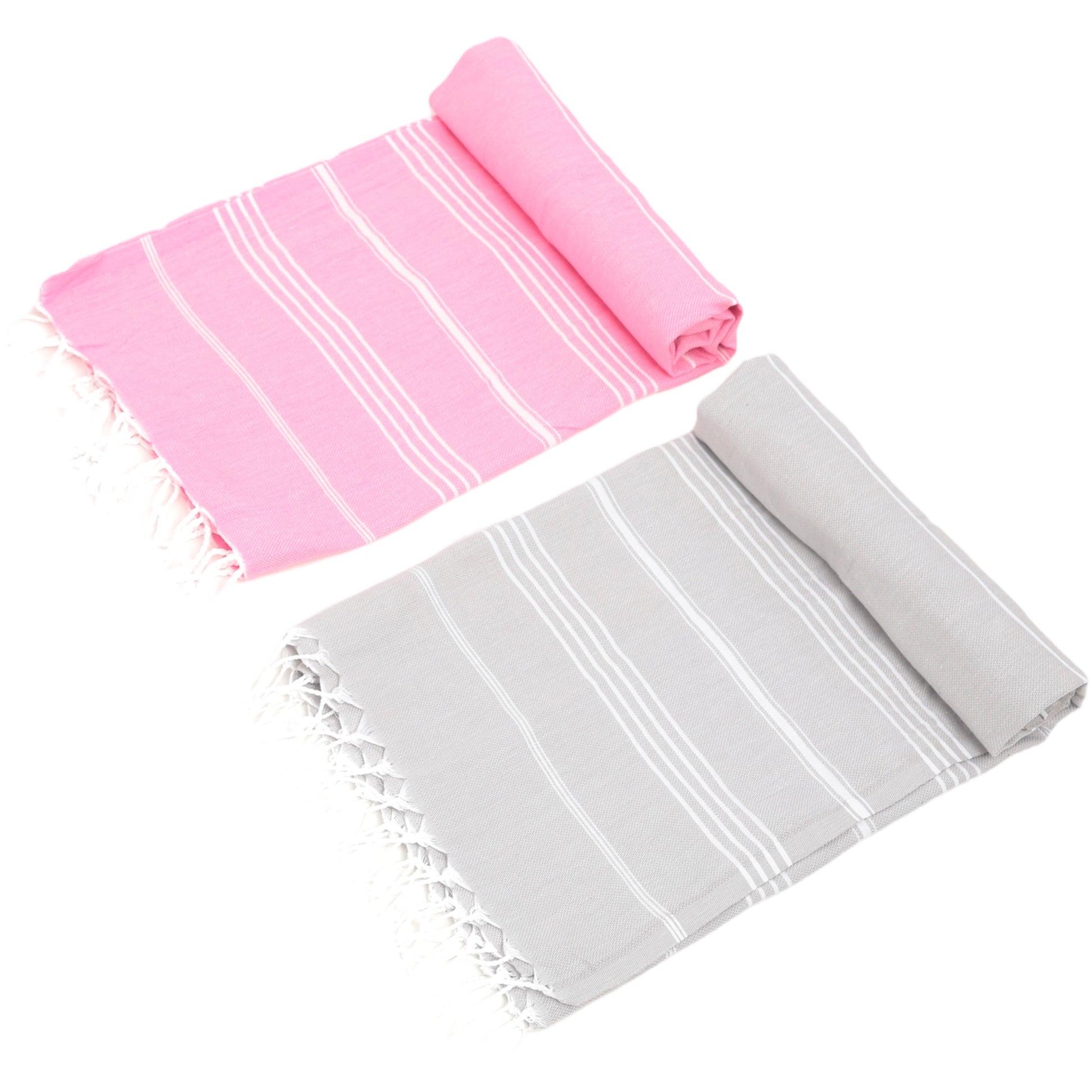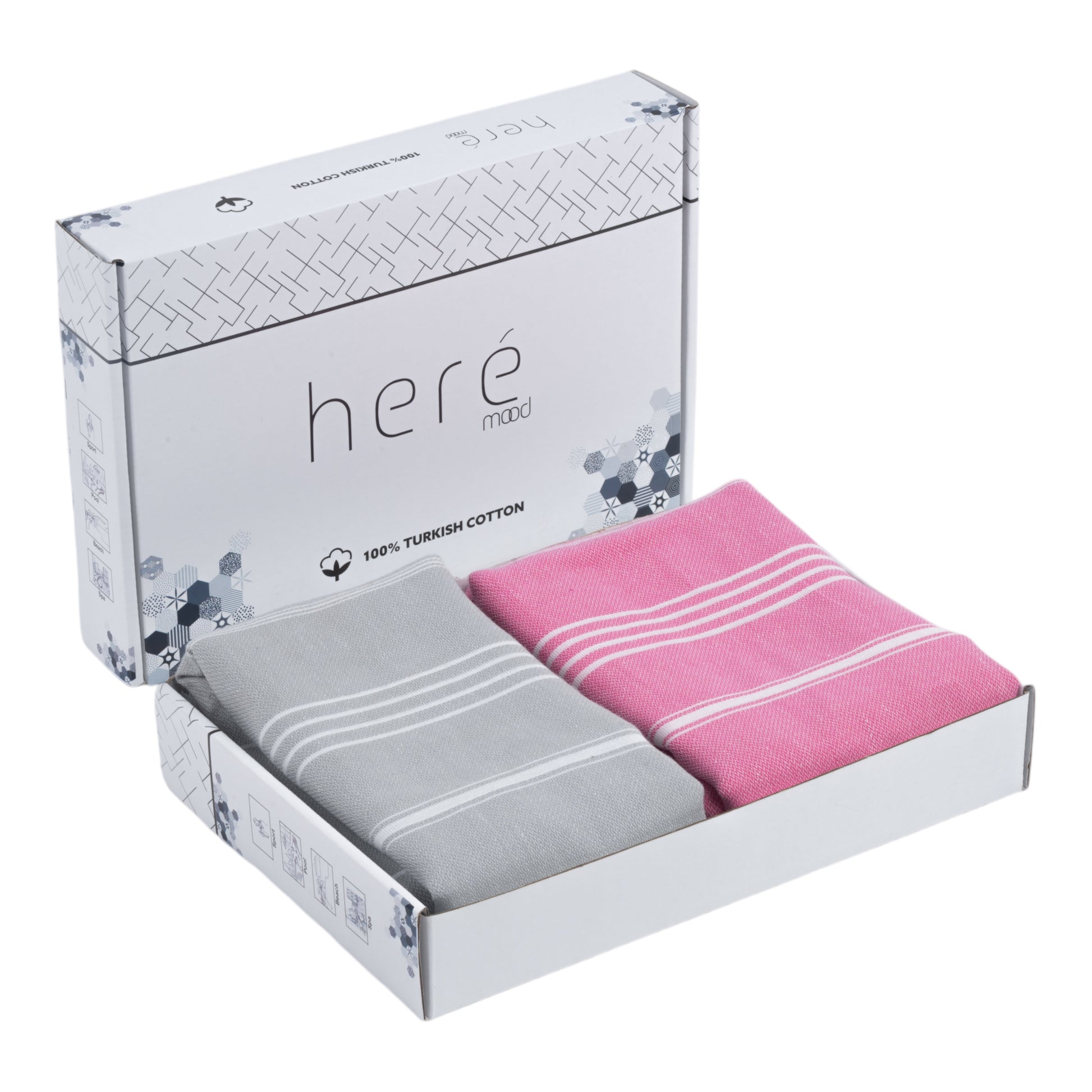 Here Mood %100 Pamuk Tatil Peştemal Seti (Gri/Pembe)