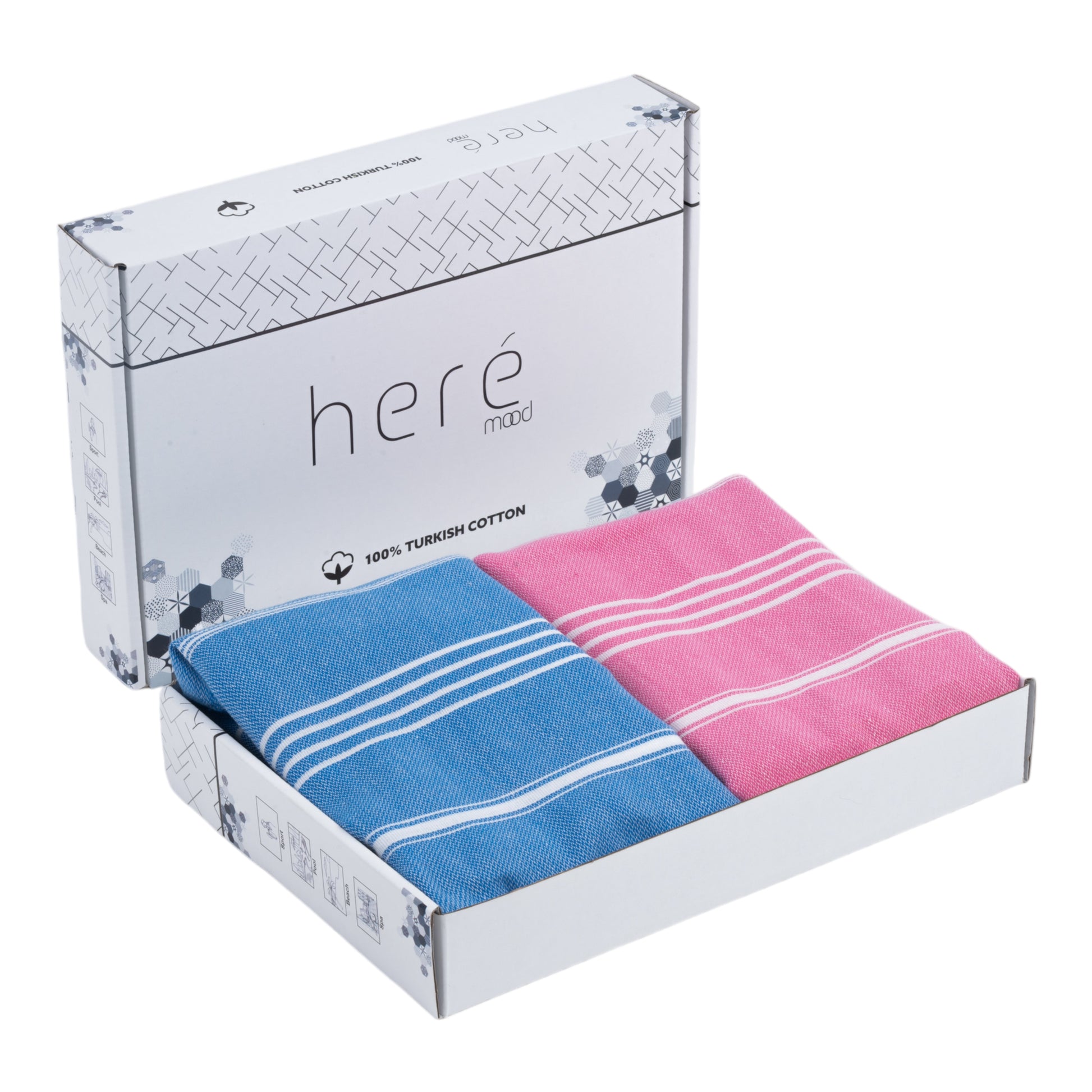 Here Mood %100 Pamuk Tatil Peştemal Seti (Mavi/Pembe)