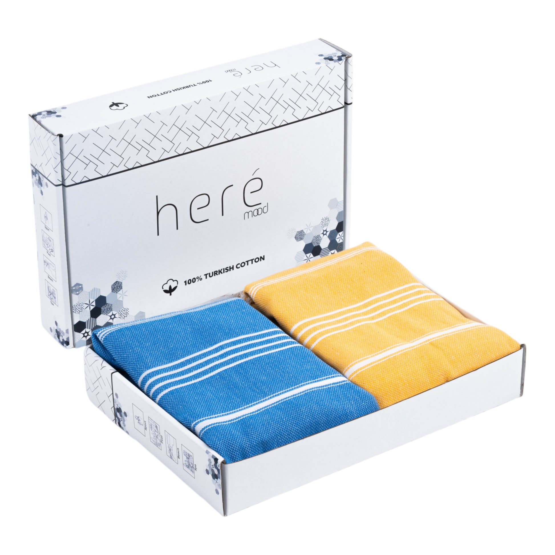 Here Mood %100 Pamuk Tatil Peştemal Seti (Mavi/Sarı)