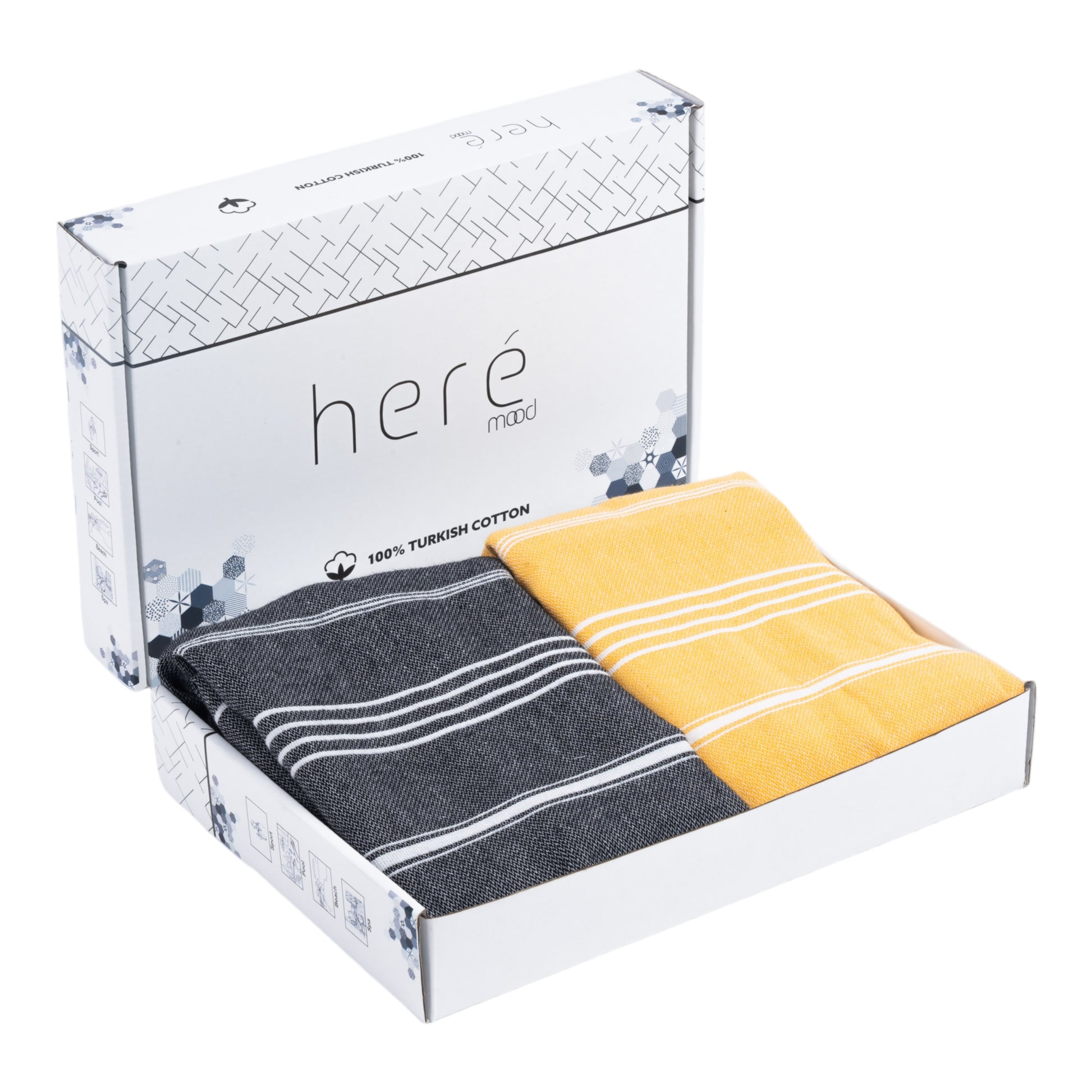 Here Mood %100 Pamuk Tatil Peştemal Seti (Siyah/Sarı)
