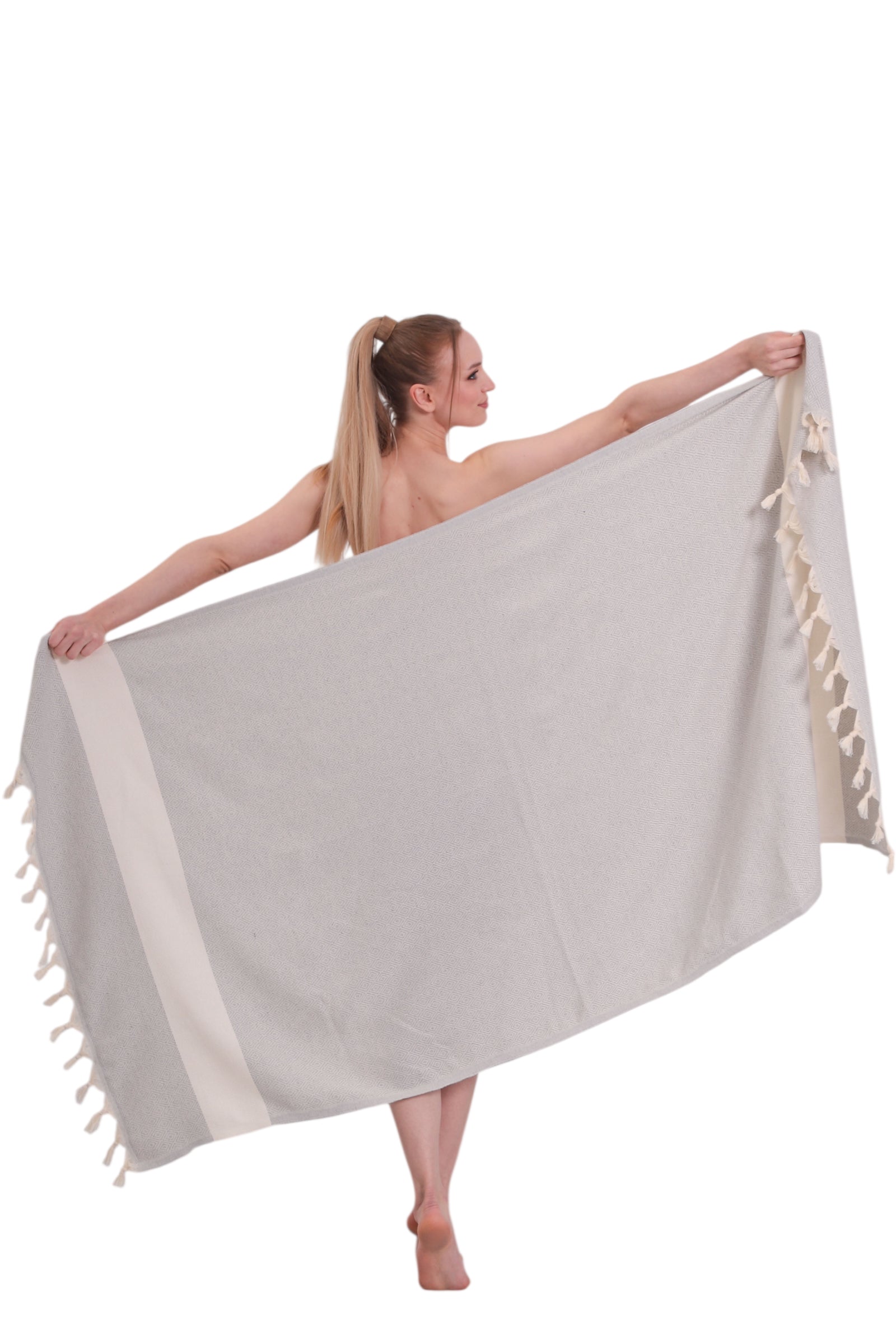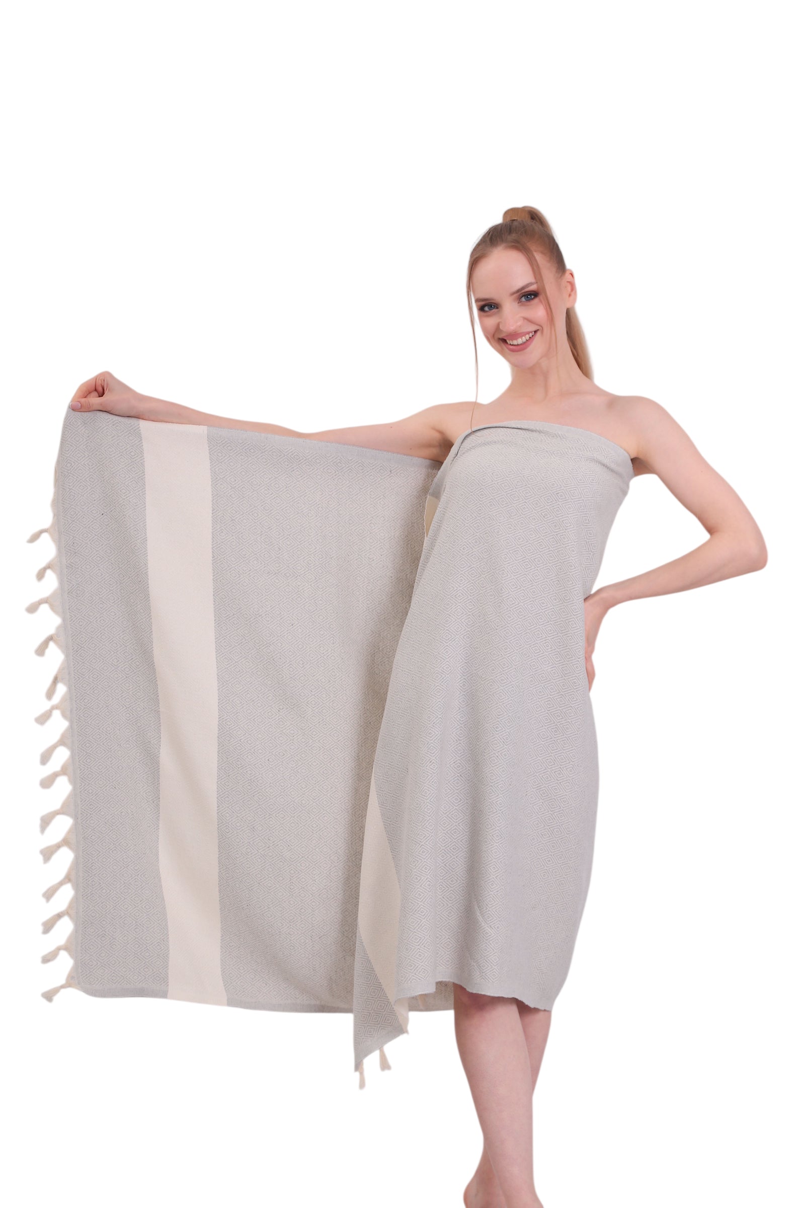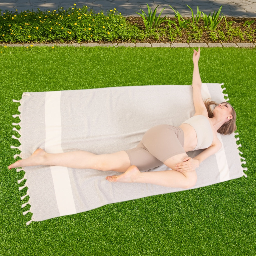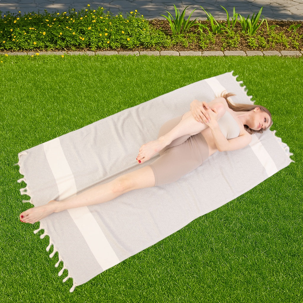 Gri hamam havlumuz sadece plaj ve yüzme gezileri için pratik bir aksesuar değil, aynı zamanda her yaz gardırobunun parçası olması gereken şık bir moda ifadesidir.